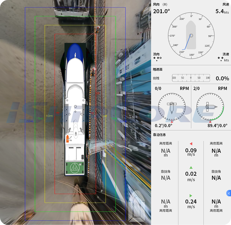 可实时计算船艏、船舯、船艉与码头的距离与靠拢角